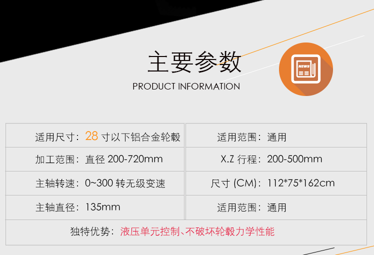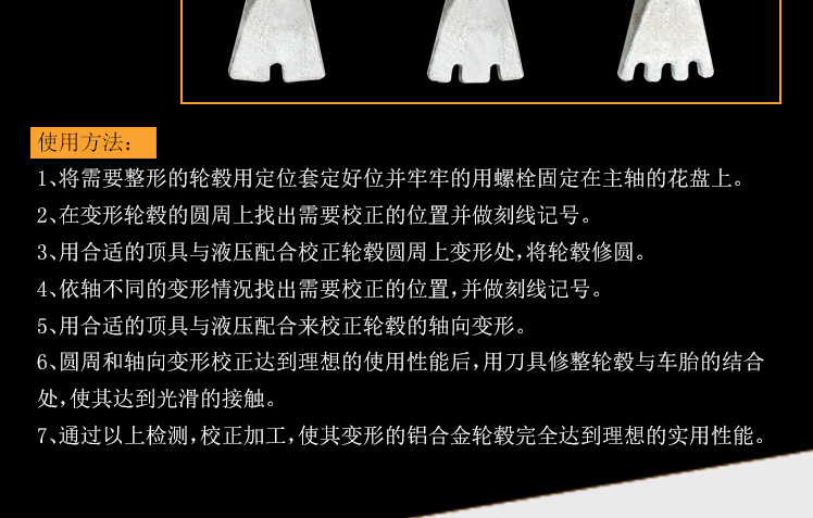 飛斯特新款輪轂整形修復機引進德國技術,可以修復28寸以內各種鋁合金輪轂的變形、焊補邊緣的校正、加工等。此設備采用一個簡易操作的液壓單元控制。在不破壞其鋁合金的分子結構和力學性能情況下,將受損的輪轂進行定位,配合熱處理和人工時效等處理, 能快速使其恢復到原狀。日照飛斯特輪轂專用整形機具備無極變速(0-300r/min) 功能,使得輪轂的偏距檢測、定位標記、整形修復、車床切削、鏡面拋光等更具簡便、快捷。日照飛斯特輪轂專用整形機適用于鋁合金輪轂整形、校正、邊緣加工、表面刨光等,是目前較先進的鋁合金輪轂修復設備。