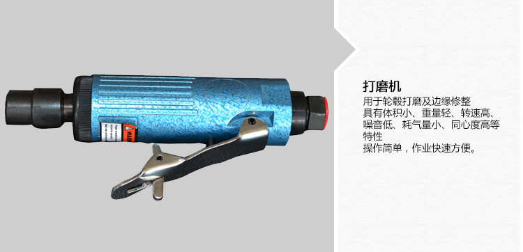 | LG-014 | 打磨機 | 輪轂修復打磨機,用于輪轂打磨及邊緣修整,具有體積小、重量輕、轉速高、噪音低、耗氣量小、同心度高等特性,操作簡單,作業快速方便。 | 1(把) | ||